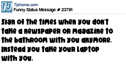 X Sign of the times when you don't take a newspaper or magazine to the bathroom with you anymore. Instead you take your laptop with you.