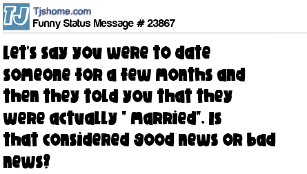 - # 31043 Would it be good news or bad news if your Girlfriend told you that she was already married???
