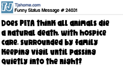 X Does PETA think all animals die a natural death, with hospice care, surrounded by family keeping vigil until passing quietly into the night?