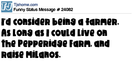 X I'd consider being a farmer. As long as I could live on the Pepperidge Farm, and raise Milanos.