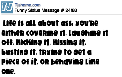- # 18292 life is all about ass. Your'e either covering it, laughing it off, kicking it, kissing it, busting it, trying to get a piece of it, behaving like one, or you live with one!
