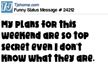 X My plans for this weekend are so top secret even I don't know what they are.