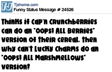 X thinks if Cap'n Crunchberries can do an "Oops! All Berries" version of their cereal, then why can't Lucky Charms do an "Oops! All Marshmellows" version?