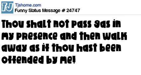 X Thou shalt not pass gas in my presence and then walk away as if thou hast been offended by me!