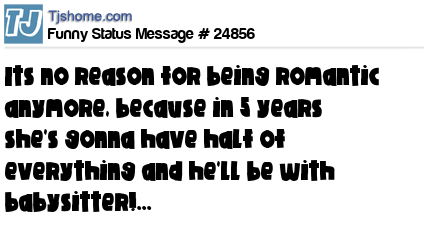 X is its no reason for being romantic anymore, because in 5 years she's gonna have half of everything and he'll be with babysitter!...