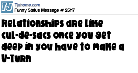 X is Relationships are like cul-de-sacs once you get deep in you have to make a U-Turn