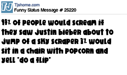 X is 97% of people would scream if they saw justin bieber about to jump of a sky scraper 3% would sit in a chair with popcorn and yell "do a flip"