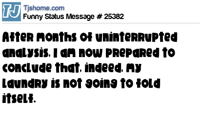 - # 62521 After months of uninterrupted analysis, I am now prepared to conclude that, indeed, my laundry is not going to fold itself