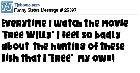 X Everytime I watch the Movie "Free WIlly" I feel so badly about the hunting of these fish that I "Free" my own!