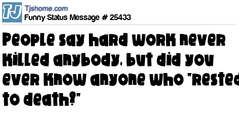- # 40076 They say that hard work never killed anybody, but did you ever know anyone who rested to death?