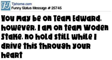 - # 118513 My girlfriend asked me "Team Edward? Or Team Jacob?" I yelled "Team Deathmatch!" And knifed her...