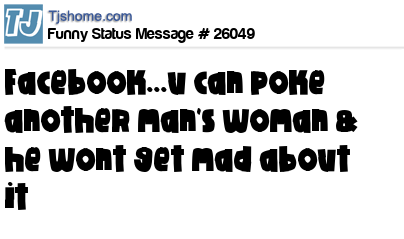 X says facebook...u can poke another man's woman & he wont get mad about it