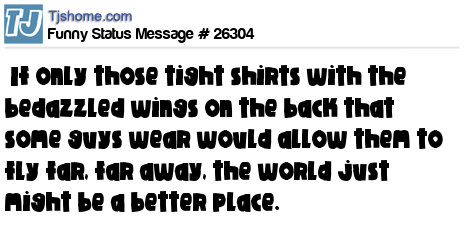 - # 26306 If only those tight shirts with the bedazzled wings on the back that some guys wear would allow them to fly far, far away, the world just might be a better place.
