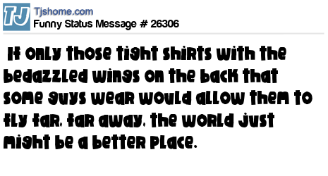 - # 26304 If only those tight shirts with the bedazzled wings on the back that some guys wear would allow them to fly far, far away, the world just might be a better place.