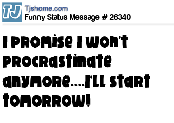 X says I promise I won't procrastinate anymore....I'll start tomorrow!