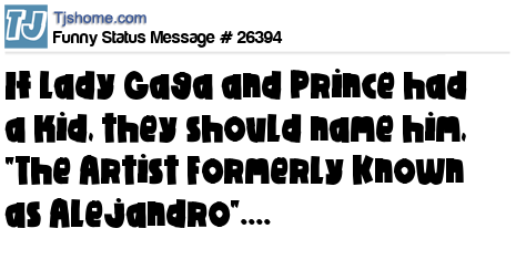 X If Lady Gaga and Prince had a kid, they should name him, "The Artist Formerly Known as Alejandro"....