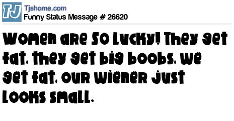 X is Women are SO lucky! They get fat, they get big boobs, we get fat, our wiener just looks small.