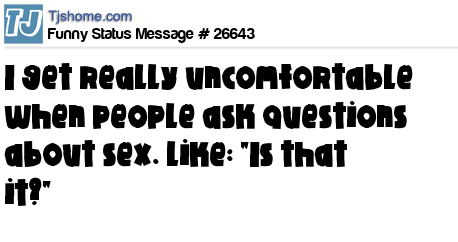 X is I get really uncomfortable when people ask questions about sex. Like: "Is that it?"