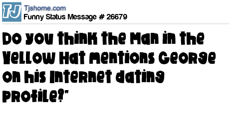 X is Do you think the Man in the Yellow Hat mentions George on his Internet dating profile?"
