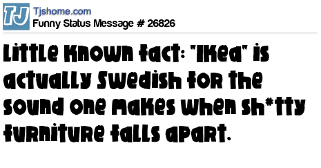 X  Little known fact: "Ikea" is actually Swedish for the sound one makes when sh*tty furniture falls apart.