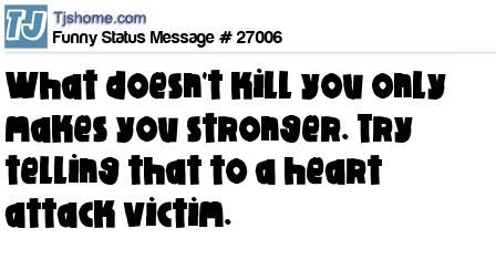 - # 48007 the saying "what doesn't kill you makes you stronger" isn't always true: things don't always make you STRONGER, they just didn't KILL YOU.