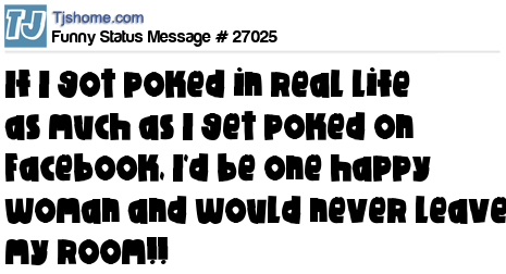 X is If I got poked in real life as much as I get poked on Facebook, I'd be one happy woman and would never leave my room!!