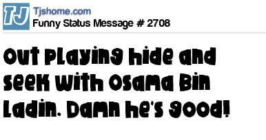 - # 6797 playing hide and seek with Osama Bin Laden. Damb he's good.