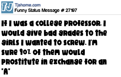 X is If I was a college professor, I would give bad grades to the girls I wanted to screw. I'm sure 90% of them would prostitute in exchange for an "A"