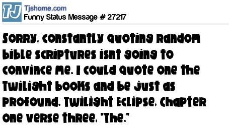 - # 22471 Sorry, quoting bible scriptures to me isnt going to convince me. I could quote "Stars Wars" or "Twilight" and it would be just as profound.