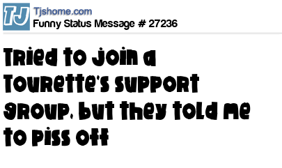 - # 20218 tried to join a Tourette's support group but they told me to piss off.