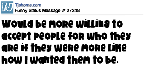 - # 16614 would be more willing to accept people for who they are if they were more like how I wanted them to be.