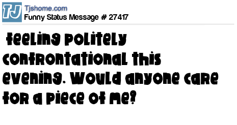 X feeling politely confrontational this evening. Would anyone care for a piece of me?