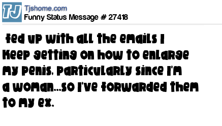 X fed up with all the emails I keep getting on how to enlarge my penis, particularly since I'm a woman...so I've forwarded them to my ex.