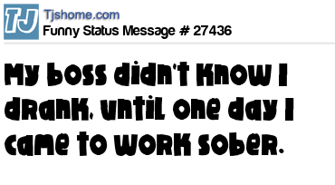 - # 20729 My boss didn't know I drank, till one day I came to work sober.