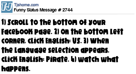 X is 1) Scroll to the bottom of your Facebook page. 2) On the bottom left corner, click English: US. 3) When the language selection appears, click English: Pirate. 4) watch what happens.