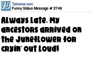 - # 157833 I always seem to be running late. My ancestors came over on the Juneflower.
