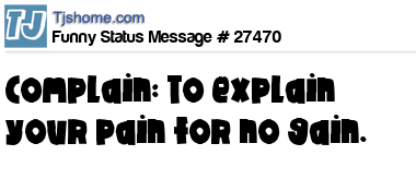 X Complain: To explain your pain for no gain.