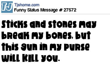 X says Sticks and stones may break my bones, but this gun in my purse will KILL you.