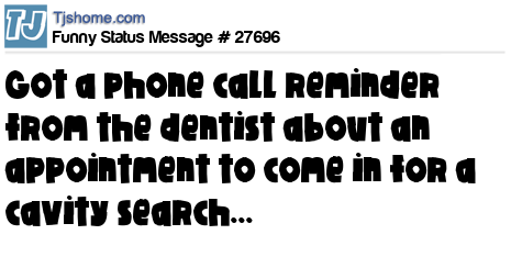 X got a phone call reminder from the dentist about an appointment to come in for a cavity search...