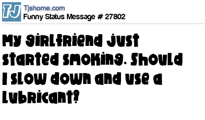 - # 166448 What should you do if your girlfriend starts smoking? Slow down and use a lubricant.