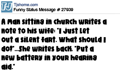 X A man sitting in church writes a note to his wife: "I just let out a silent fart. What should I do?"...She writes back, "Put a new battery in your hearing aid."