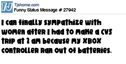 X I can finally sympathize with women after I had to make a CVS trip at 2 am because my XBOX controller ran out of batteries.