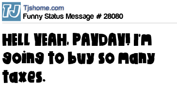 X HELL YEAH, PAYDAY! I'm going to buy so many taxes.