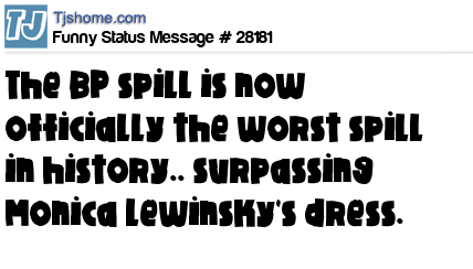 X The BP spill is now officially the worst spill in history.. surpassing Monica Lewinsky's dress.