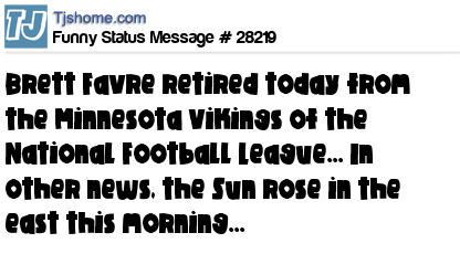 - # 28213 Brett Favre retired today, I'm not Worried about it too much. It's kinda like when Snoop Dog quit's weed. It really means nothing."