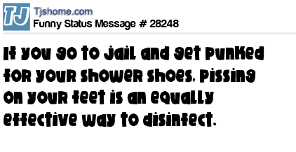 X If you go to jail and get punked for your shower shoes, pissing on your feet is an equally effective way to disinfect.