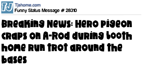 X is Breaking News: Hero pigeon craps on A-Rod during 600th home run trot around the bases