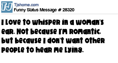X  I love to whisper in a woman's ear. Not because I'm romantic, but because I don't want other people to hear me lying.