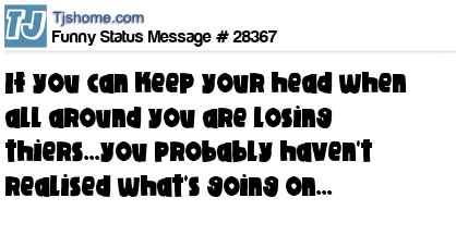 X says if you can keep your head when all around you are losing thiers...you probably haven't realised what's going on...