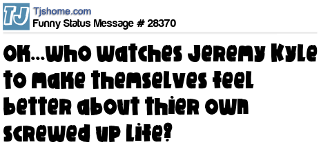 X ok...who watches Jeremy Kyle to make themselves feel better about thier own screwed up life?